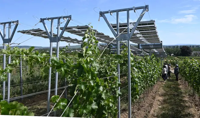 农业光伏的优势:组件之间仍可进行耕作。(图片来源:Öko-Haus/Matthias Baumgartner)